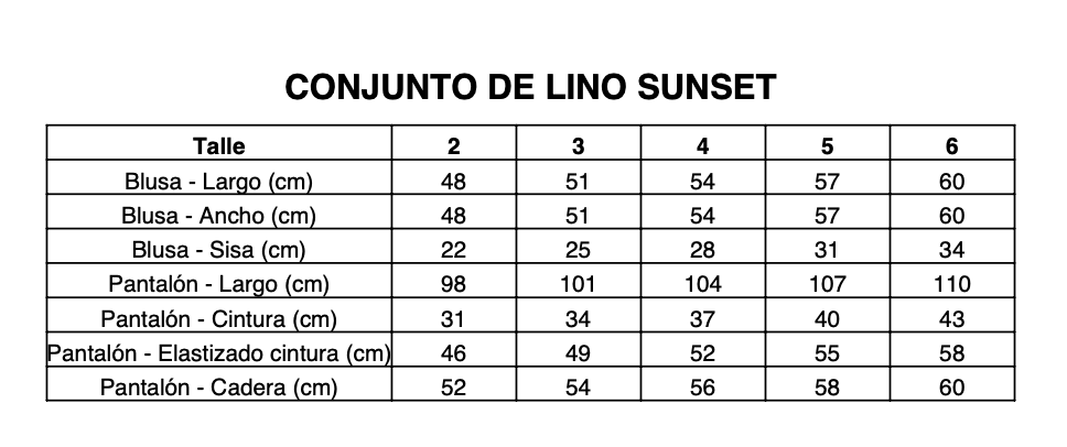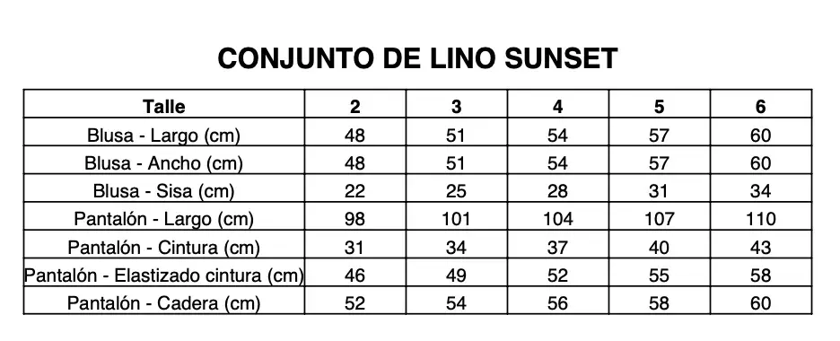 Aclaración: Las medidas de cintura, elastizado cintura, y cadera, se deben de multiplicar x2.